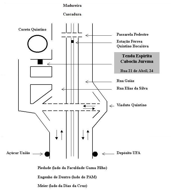 virar a direita e ir pela Rua Goiás até encontrar o Viaduto de Quintino, conforme o Mapa